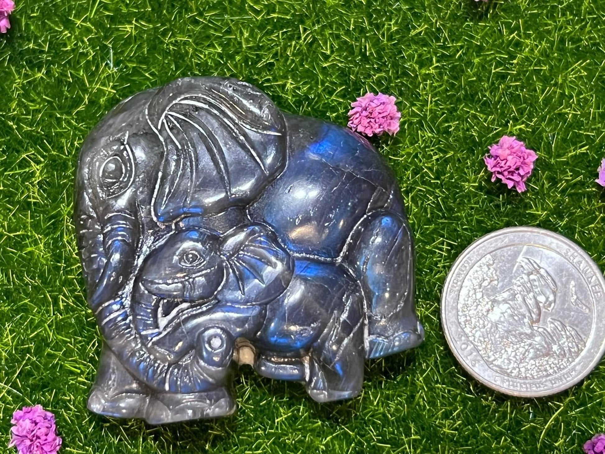 Labradorite Mama & Baby Elephants
